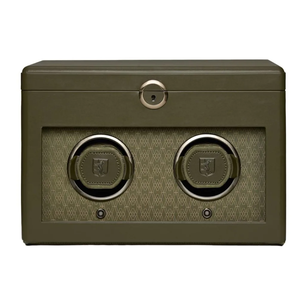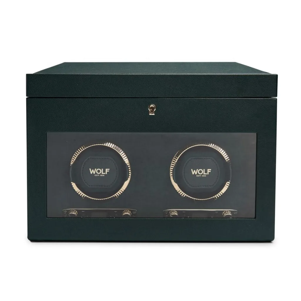 Wolf Brit Racing Green Double Watch Winder With Storage
