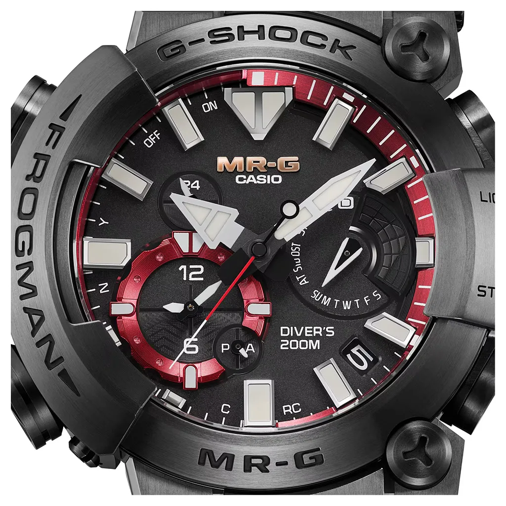 A premium, full-metal G-SHOCK MR-G timepiece for the sea — the titanium armor-clad, airtight MRG-BF1000 with ISO 200-meter water resistance — joins the FROGMAN family of full-fledged diver’s watches.