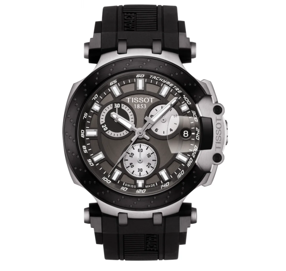 For speed fanatics, the Tissot T-Race Chrono is the watch that represents one of the fastest and most thrilling sports on Earth. Both sporty and comfortable to wear, for everyday life or on a bike, and incorporates elements of motorsports into its design. The overall style of the watch stays sober and masculine, with features of the motorbike that can be discovered in every detail. The brake-disc is on the bezel, the pushers resemble footrests and tyre treads are left on the bracelet.