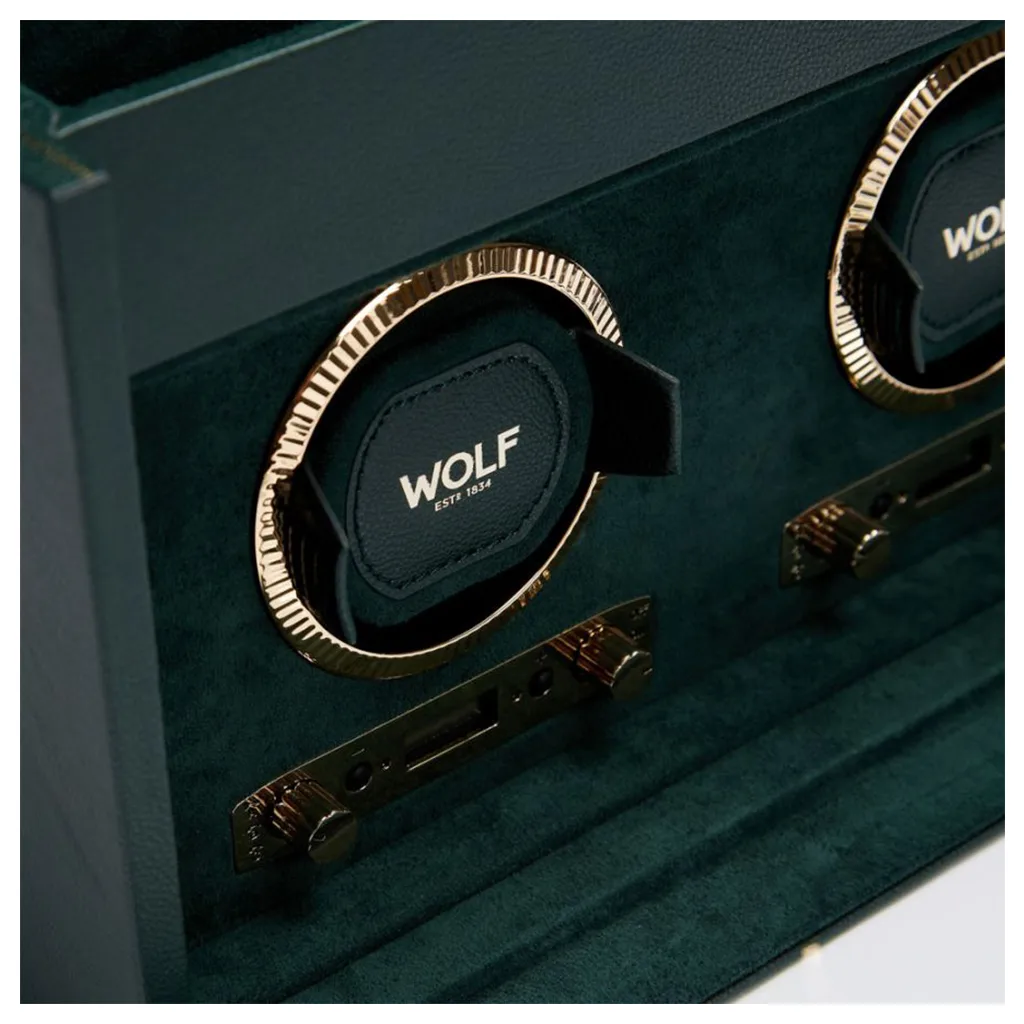 Wolf Brit Racing Green Double Watch Winder With Storage