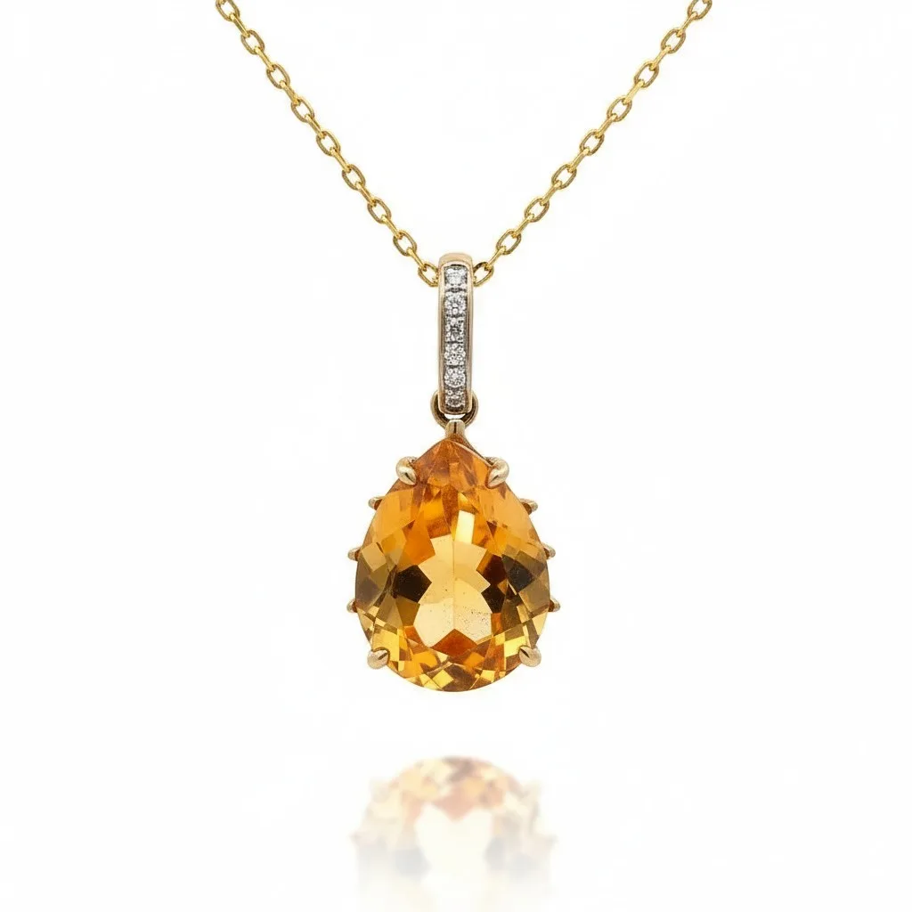 9ct Yellow Gold Citrine & Diamond Teardrop Earrings